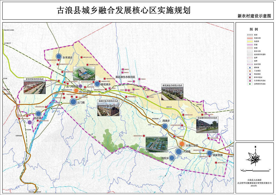 本次新农村建设规划主要包括三个部分:一是秉着公共设施相对集中,并向金色大道临近的原则,对各乡镇的各类公共设施进行了合理的布局;二是以户籍制度改革为先导,以统筹配套的土地制度、就业和社会保障制度为依托,对农村劳动力的城乡融合进行空间引导;三是对黄花滩生态移民示范区建设的总体布局、建设规模和建设项目进行了规划布局。
