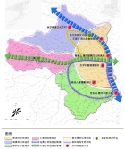 规划构建了“四区九点·两带两环”的空间发展格局。“四大片区” 分别为东部的黄河民俗风情区、北部的高原果香体验区、西部的川道田园休闲区和南部的森林生态度假区;“九点” 为九大乡村旅游重点项目,包括依托川道农业、苹果种植业等农业产业基础的三大农业型旅游节点:陕北农耕文化园、七彩川道、乡村婚庆公园,和依托宜川特色村落以及非物质文化遗产的六个乡村型旅游节点:昝家山·黄河鼓舞文化传承地、桃枝村·桃池人家摄影美村、太平窑居度假村、舌头岭·黄河非遗小村、羊家庄·陕北美食体验地、永宁耕读文化古村;“两带·两环” 分别为依托宜川县两条旅游交通干线的南北向沿黄乡村旅游发展带和东西向川道乡村旅游发展带,以及结合宜川地形地貌、景观特色的北部黄土黄河风情环线和南部森林绿海生态环线。